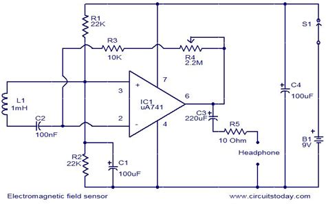 Electromagnetic Field Sensor Circuit Diagram. Electromagnetic sensor circuit using 741 ic. Unlike most other simple emf detectors, this one has a meter.
